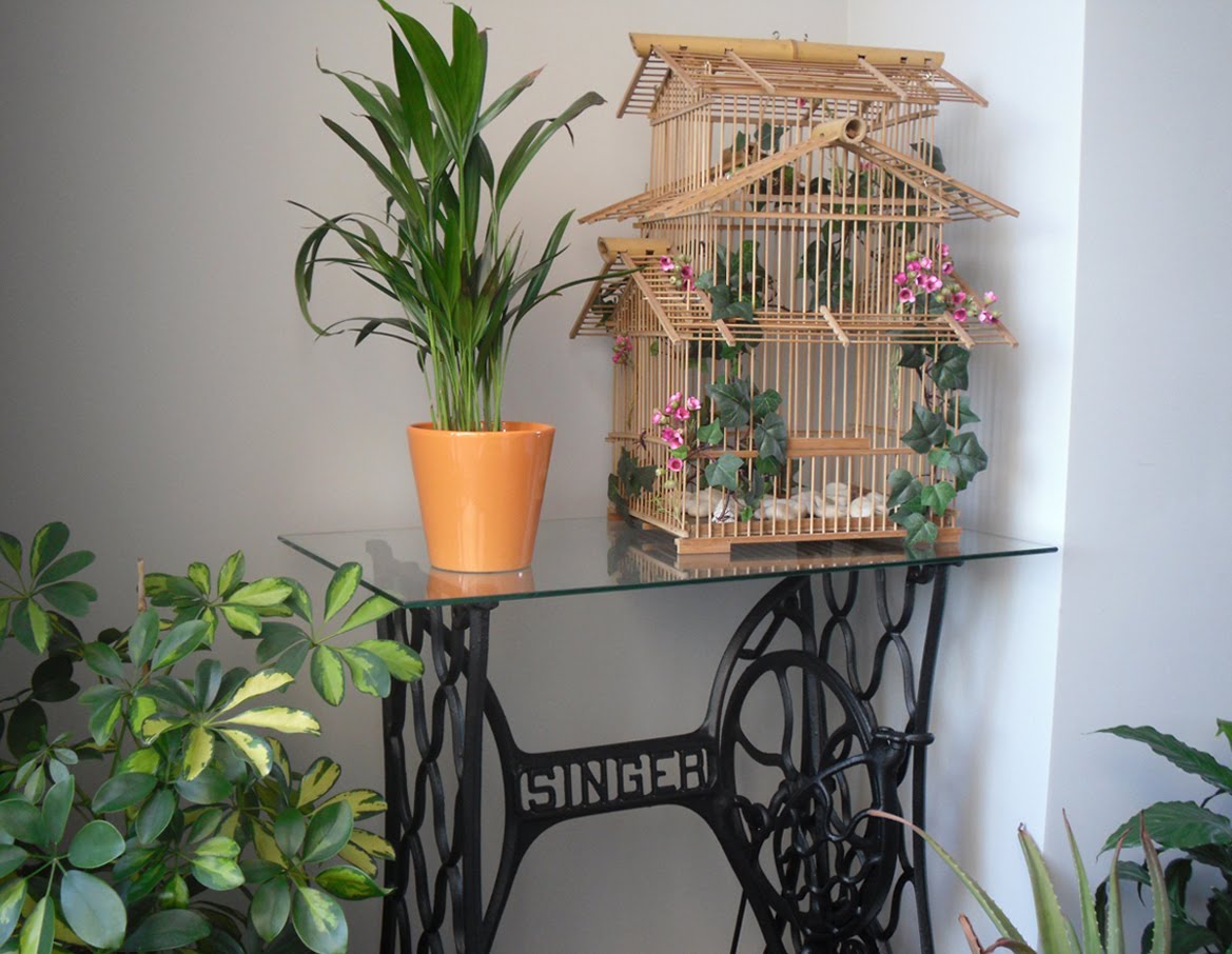 Así que aquí os dejo mi particucular Antes & Después con unos pies de una máquina -Singer- de coser antigua y una jaula de mimbre tambien olvidada en un trastero.